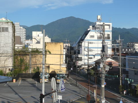 小田急線から降りて伊勢原駅北口のコンコースから大山を撮影。(写真下)