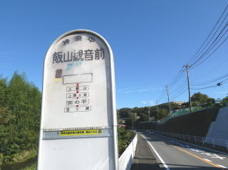 8:07、飯山観音前にて下車。(写真下) 上空は相変わらず青空が広がっている。出発の準備を終え、8:14、気を取り直して出発。 |