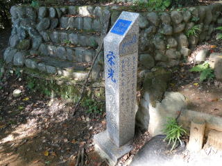 観音堂の左側から奥に進むと、登山道となり、白山への男阪・女坂の分岐点となっている。すると、その男坂側に石柱を見かけた。(写真下)