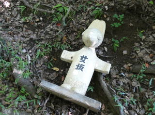 今日は、男坂よりも時間はかかるが、斜度がキツくないと思われる女坂を選択。右手に「女坂」と書かれたウサギ?の像が倒れているのを見る。(写真下左)