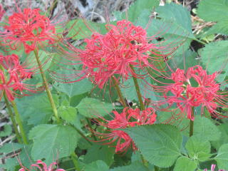 順礼峠からの山道を終え、バス通りに出る直前で、ヒガンバナを見かけた。(写真下)