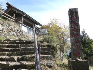 | 表参道に合流して、約12分後、阿夫利神社本社に到着。(写真下) 今日は、茶店が営業しておらず、本社の戸もカギがかかったままだった。戸の外から参拝。 |