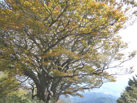 本社を参拝後、いつものようにブナの御神木を撮影。(写真下) さすが頂上だ。もう殆ど黄葉していた。その後、頂上のベンチでゆっくり休憩していたら、次々と登山者がやってくる。いつの間にか20人ぐらいになっていた。