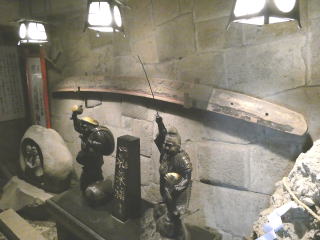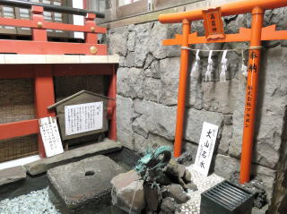 | 下社の地下の大山名水を参拝。(写真下左) その後、江戸時代の納め太刀、さざれ石などを見学。(写真下右)...最近、ここを見学することが多い。 |