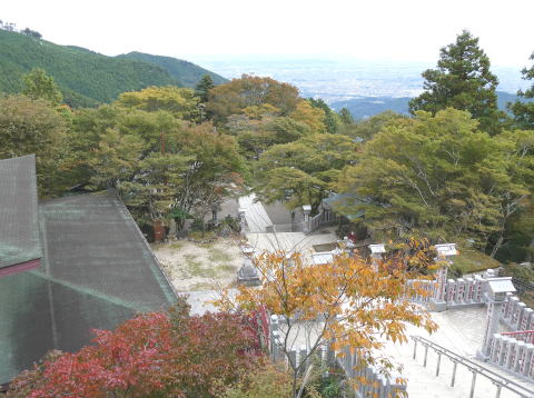 | 下社から石段方面を見下ろす。(写真下) あと1ヶ月もしないうちに辺り一帯が紅葉となるだろう。 |
