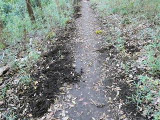 | [両側に土を掘り起こした跡あり] |