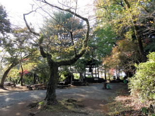 | 自販機から緩く登っていき、弘法山頂上に到着。目の前にイチョウの大木が出迎えてくれる。(写真下) まだ黄葉には早いタイミングだった。 |