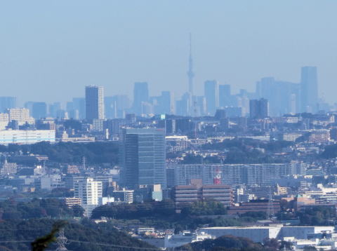 | 頂上にある展望デッキにて遠くを眺めていたら、東京スカイツリーが目に入り、思わず望遠で撮影。(写真下) ここからのスカイツリーは、 たぶん初めて。(だと思う) |