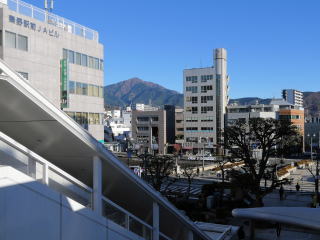 | 8:30、秦野駅北口のコンコースを出た所で大山を望む。(写真下) これから秦野湧水群巡りがスタート。天気は晴天で問題なしだが、計画した訪問対象の湧水地は19箇所あり、日没前に周り切れるかが課題だ。 |