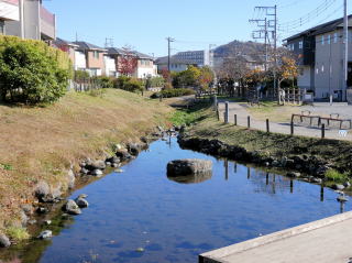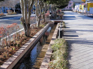 ここ尾尻・今泉地区は地名のとおり地下水の豊富な地区であり、昔からあった水路には荒井湧水から湧き出した水が一年中流れ、地域の人たちに親しまれてきました。そこで、街が整備されても昔の名残を残し、いつまでも親しまれるよう、平成11年度に完成した区画整理事業の中でせせらぎを作り、昔からある自然を活かすために、水路から水を取り入れたものです。この湧水は、せせらぎを流れた後、自然に水無川へ流しています。 秦野市』