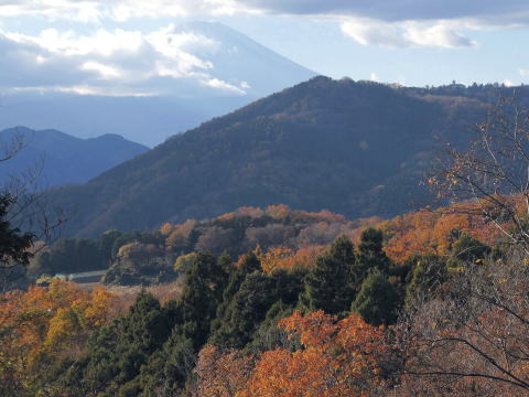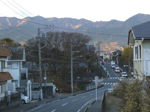 残りの湧水は、峠の湧水、赤松沢湧水、谷津湧水、若竹の泉の4ヶ所で、まだ先は長い。日没前にはゴールしたいが、果たして間に合うだろうか。ということで、ひたすら渋沢丘陵を歩き続ける。だが、栃窪会館に出る前でふと右手を見たら塔ノ岳方面が見えたため、足を止めて撮影。(写真下) |