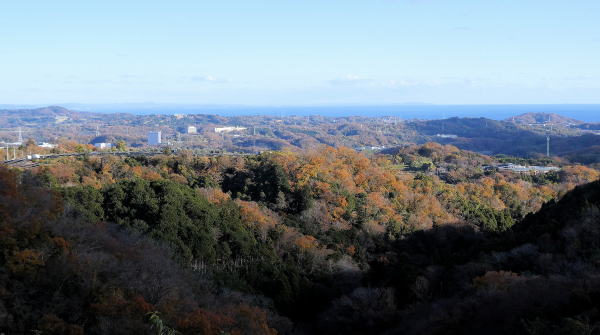 | コンクリート階段を下る前に前方を眺める。ここはビューポイントとなっていた。(写真下) 相模湾が広がり、左に大磯鷹取山、右に二宮吾妻山が見えた。 |