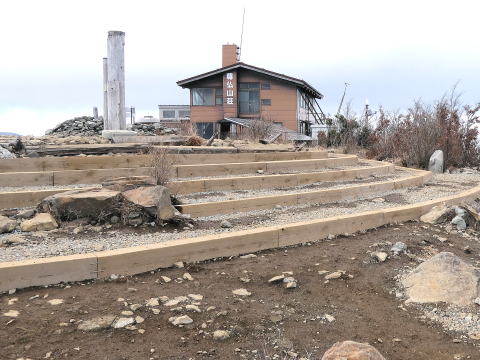 11:00、烏尾山到着。ザックを下して小休止。烏尾山荘に向かう。2024年12月29日をもって営業終了と公表されたが、建屋はまだ外見上、変化はないように見えた。(写真下左)