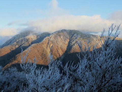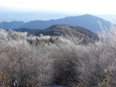 | 塔ノ岳を下り始めると昨夜の霧氷がまだ解けずに残っていたので思わず撮影。(写真下) |