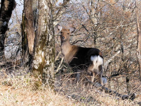 | 塔ノ岳を下っていき、途中の小ピークを越えた所で、左にシカ親子と遭遇。母親シカは、じっとこちらを見つめている。(写真下) お蔭で何枚も撮影することが出来た。そういえば、昨年の正月でもこの辺りでシカの家族を撮影したことを思い出す。 |
