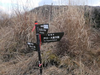 11:16、山荘の下にある分岐点で戸川・大倉方面に向かう。(写真下右) |